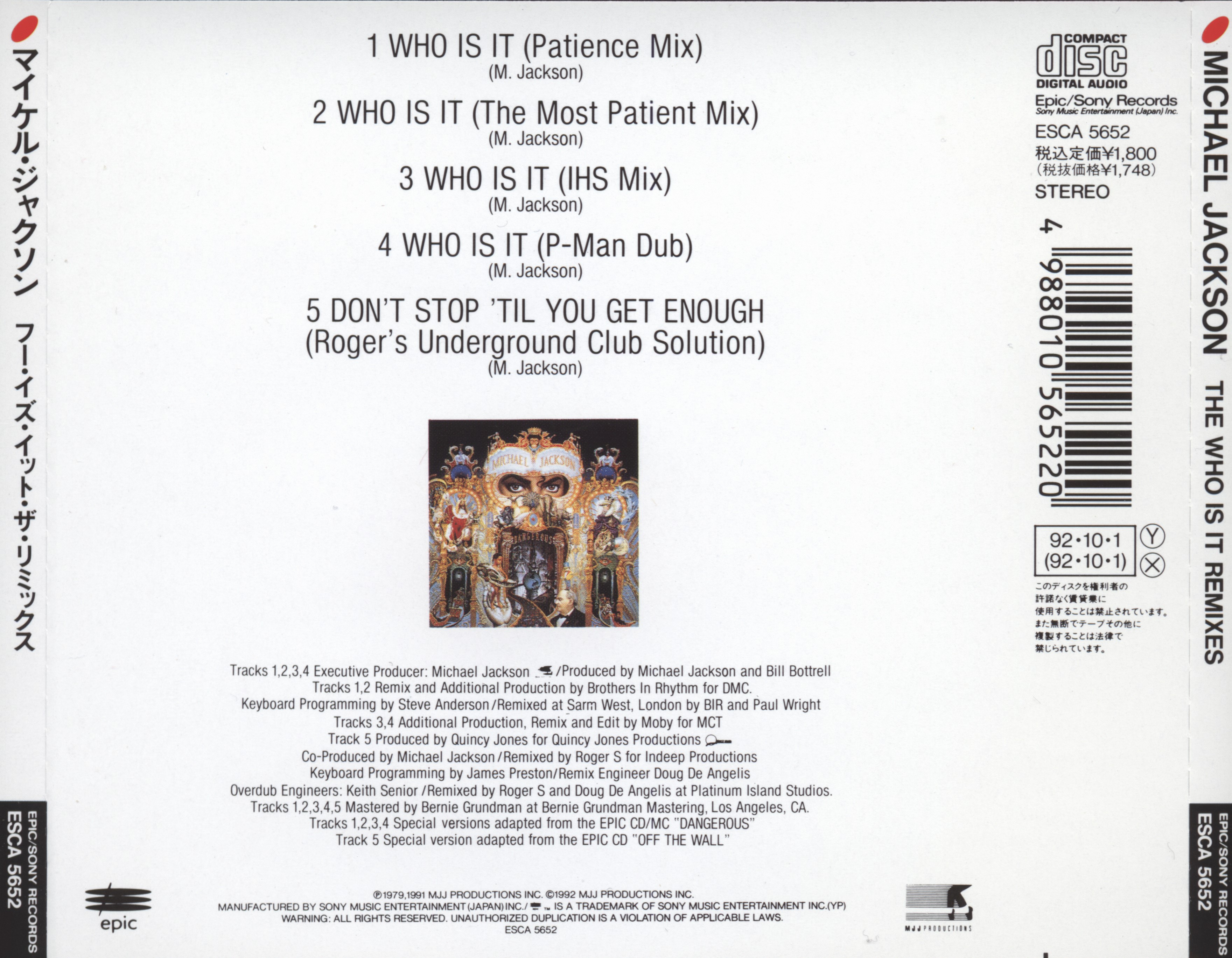 1992 - Who Is It (CD Single 2 - ESCA 5652)(Japan CDM)(1992)(Single)